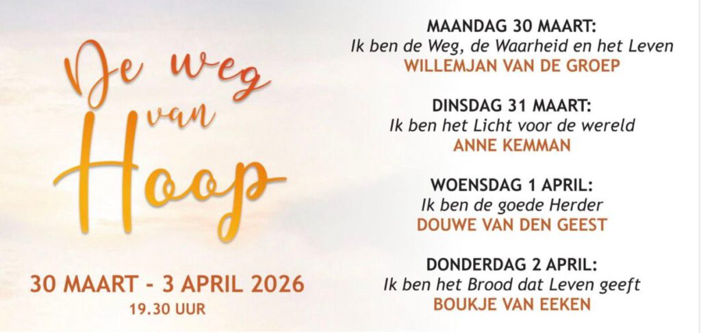 Zondagavond om 19:00 uur kun je LIVE mee kijken naar de 45 minuten samenkomst, of kijk de samenkomsten op een later moment terug op ons YouTube kanaal.